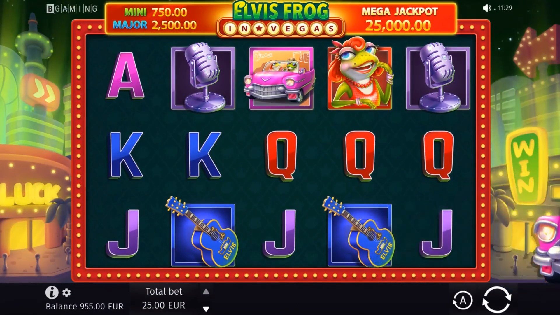 - Elvis frog (wild) – Suit 3 for 25 coins, 4 for 250 and 5 for 500 coins.